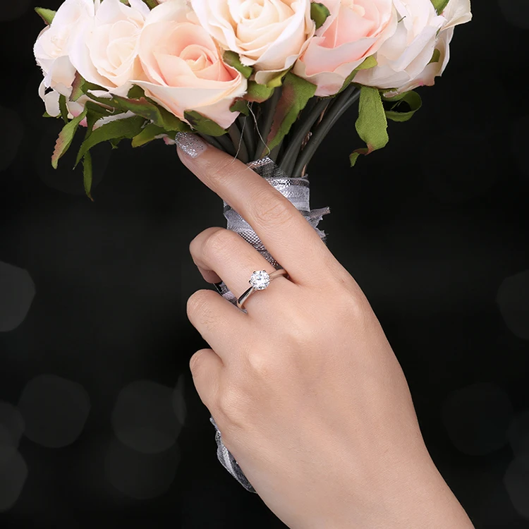 A classic solitaire ring that embodies pure sophistication and love. Crafted from 925 sterling silver, it features a radiant 5A cubic zirconia centerpiece that sparkles with exceptional clarity, perfect for celebrating life’s most meaningful moments.
