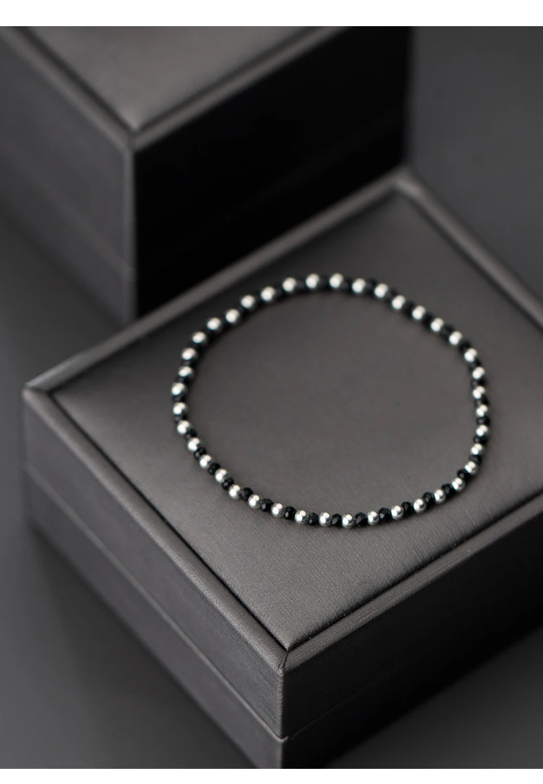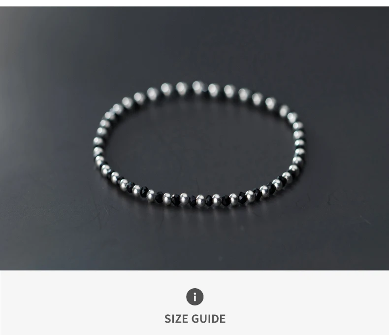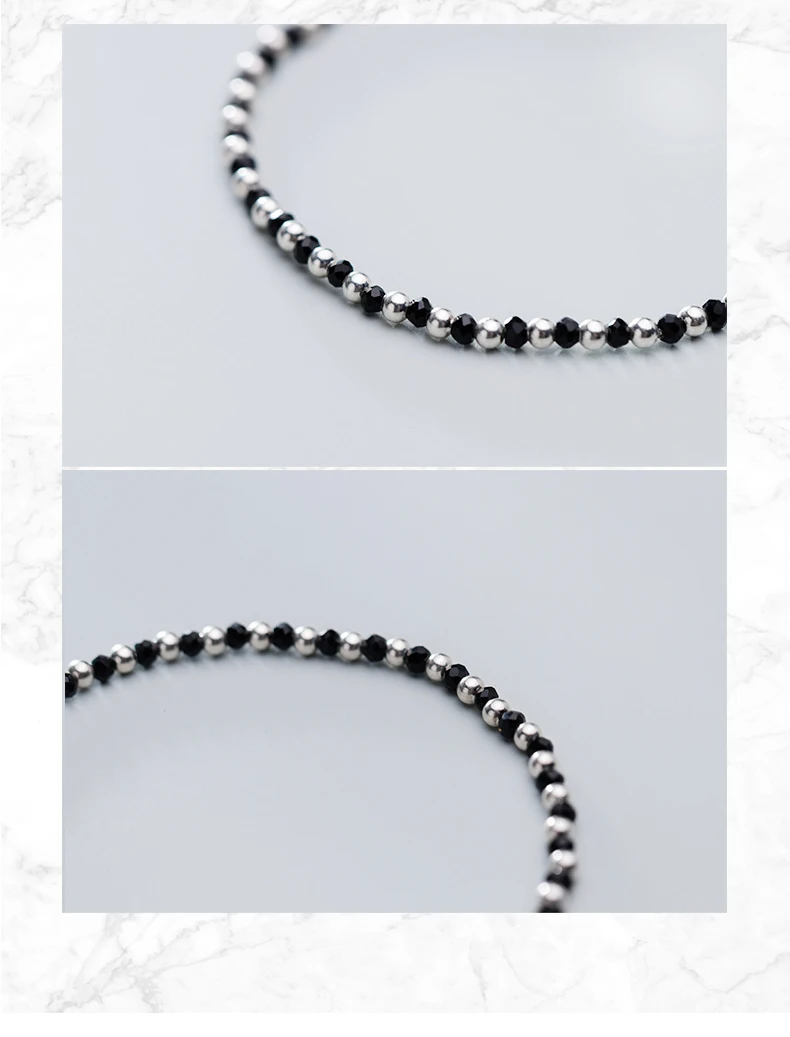 Elegant Black Crystal Ball Strand Bracelet in 925 Sterling Silver - A Sophisticated Gift for Women