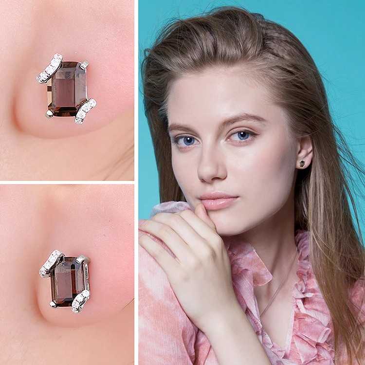 Elegant Emerald Cut 1.6Ct Genuine Smoky Quartz Earrings in 925 Sterling Silver – A Timeless Gemstone Gift for Women