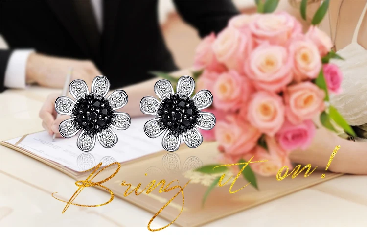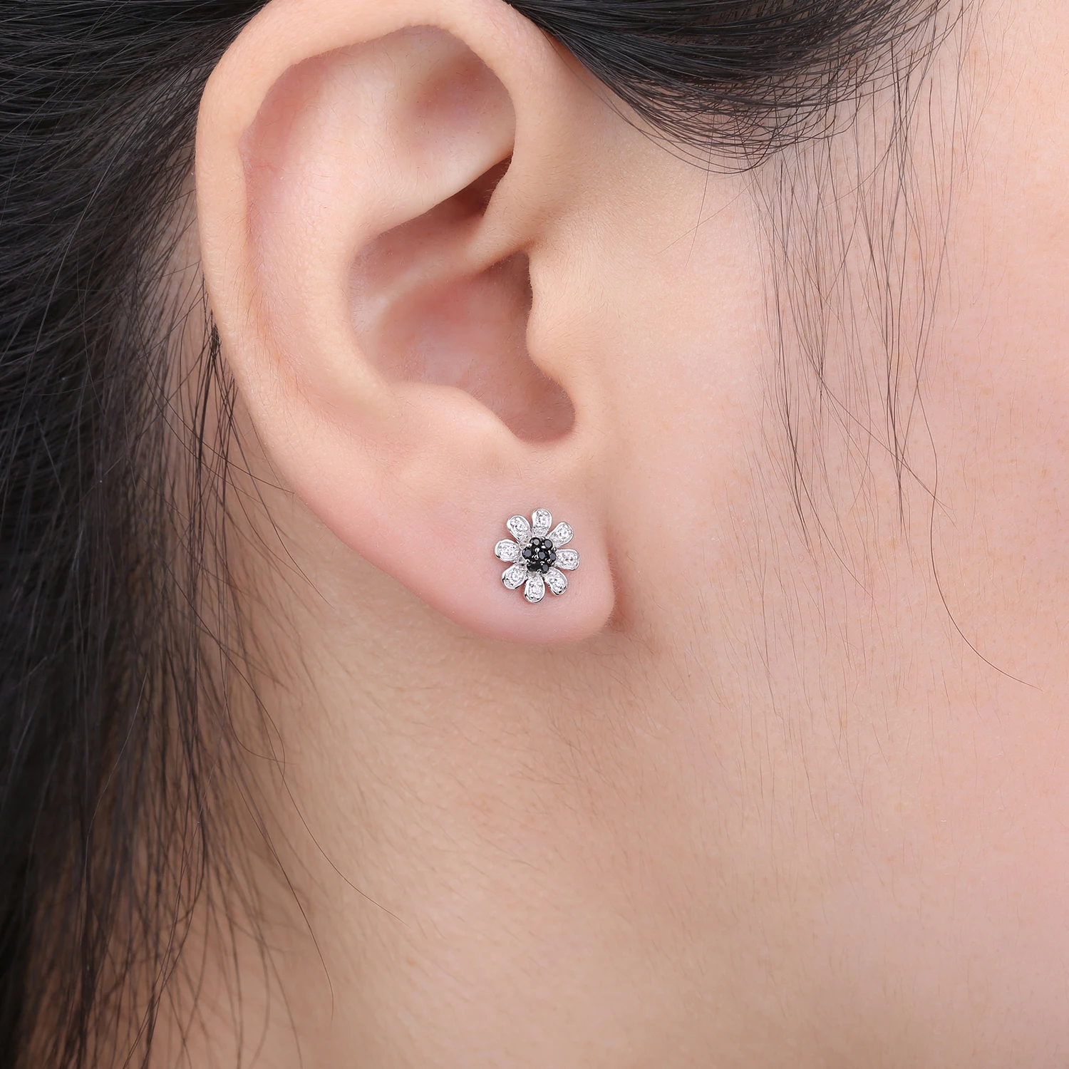 Elegant Flower Design Black Spinel Stud Earrings in Solid 925 Sterling Silver - A Perfect Fine Jewelry Gift for Women