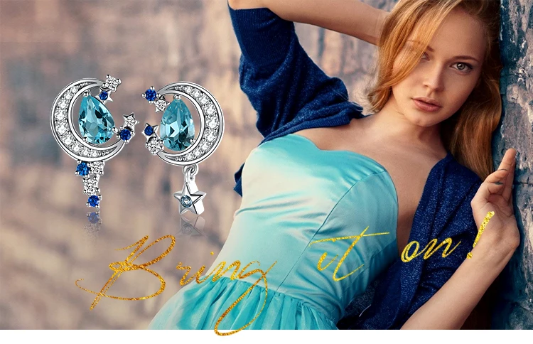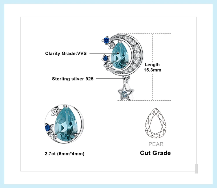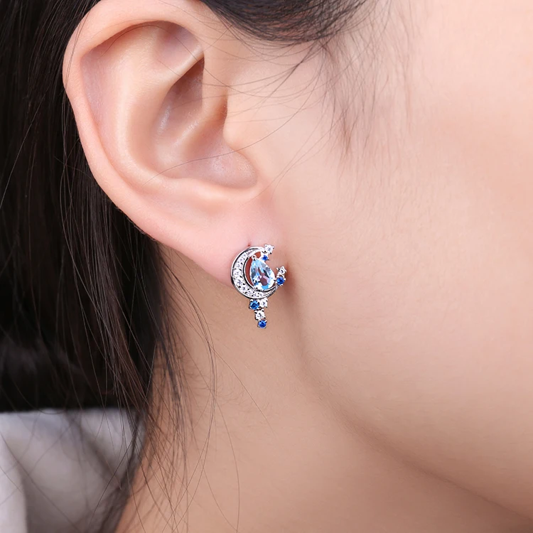 √NATURAL SKY BLUE TOPAZ CREATED SAPPHIRE EARRINGS FOR HER: If class is what you look to exhibit with your choice of outfit, then the silver star moon earrings is what you need. This earrings with an exotic birthstone from natural sky blue topaz is your best bet at charming all those that admire you. The fashion star moon earrings will make all your outfit look elegant and classy.