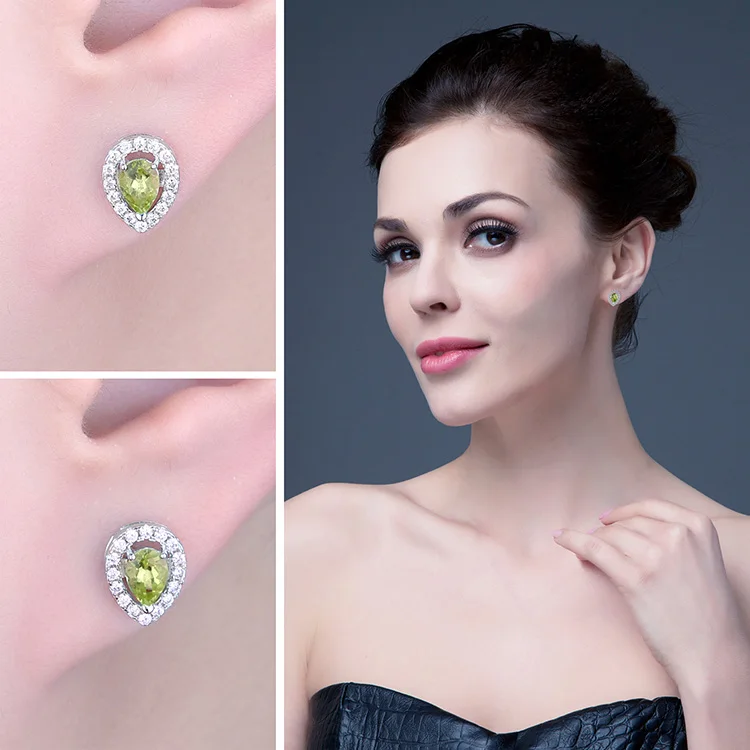 Elegant Pear-Shaped Natural Green Peridot Stud Earrings in 925 Sterling Silver for Women – Perfect Fashion Jewelry for Any Occasion