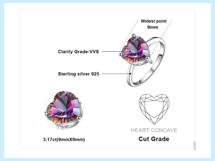 Exquisite Heart-Shaped Rainbow Mystic Quartz Solitaire Ring in 925 Sterling Silver for Women - A Colorful Gemstone Statement for Engagement and Special Occasions