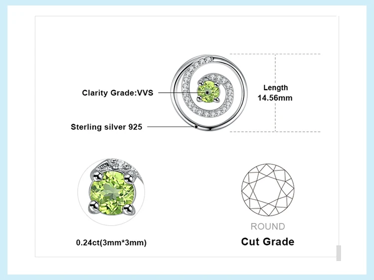 Exquisite Natural Peridot & Solid 925 Sterling Silver Round Stud Earrings for Women - Elegant Green Gemstone Jewelry Gift for Any Occasion