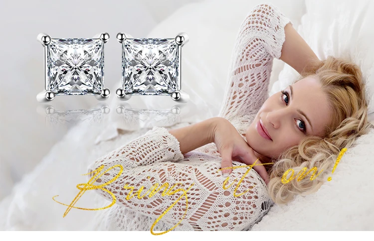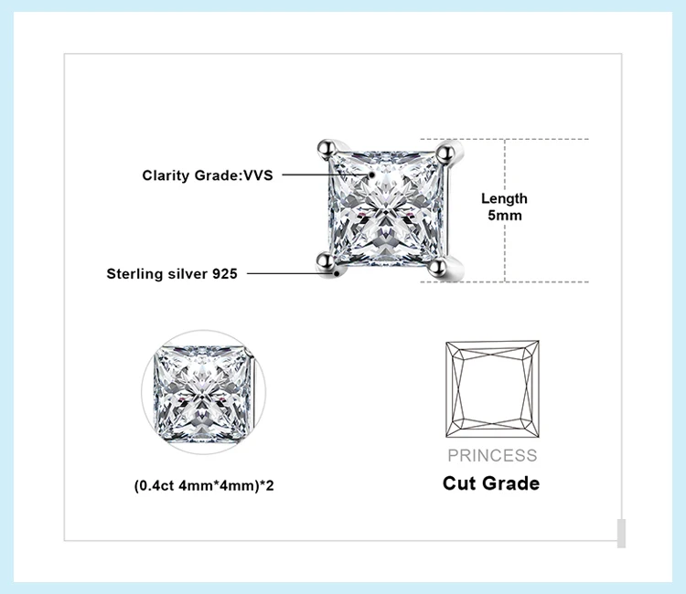 Exquisite Princess Cut 5A Cubic Zirconia Engagement Stud Earrings in 925 Sterling Silver - Perfect for Weddings and Anniversaries