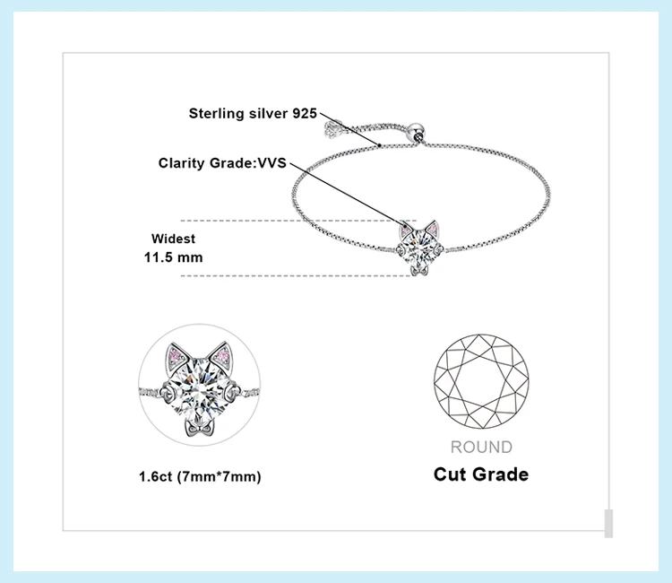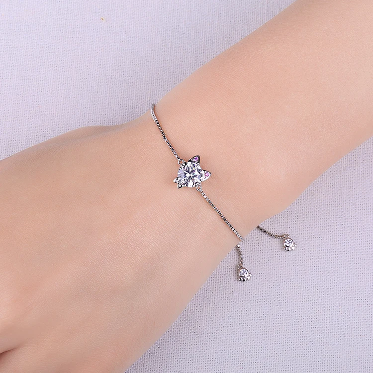 New Arrival: Exquisite 1.7Ct Round Gemstone Adjustable Love Cat Bracelet in 925 Sterling Silver - A Perfect Gift for Women