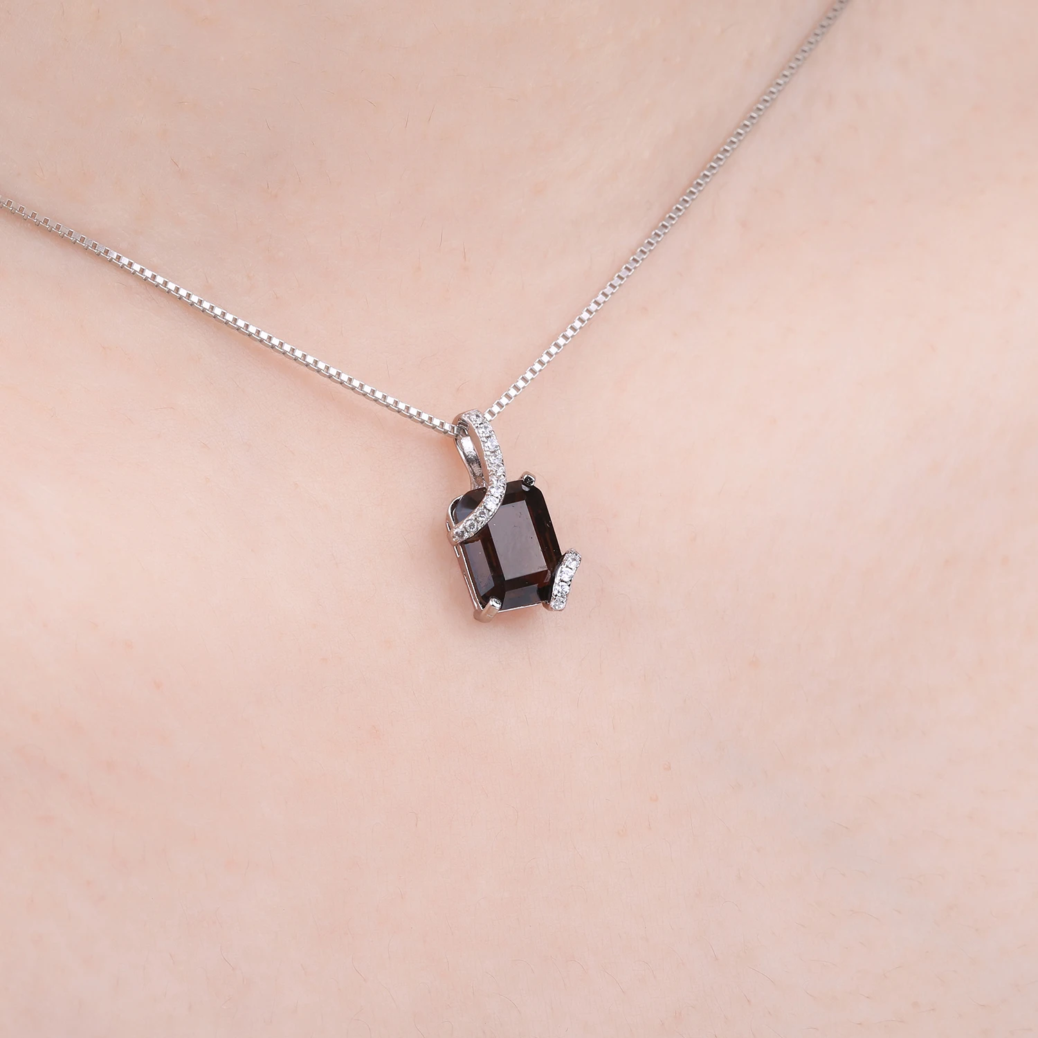 Stunning 2.2Ct Genuine Smoky Quartz Pendant Necklace in 925 Sterling Silver - A Timeless Gift for Her